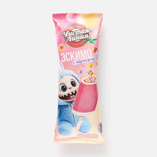 Эскимо Пломбир аромат ванили с рис шариками в глазури аромат малины Спироллло Чистая линия БЗМЖ 70г
