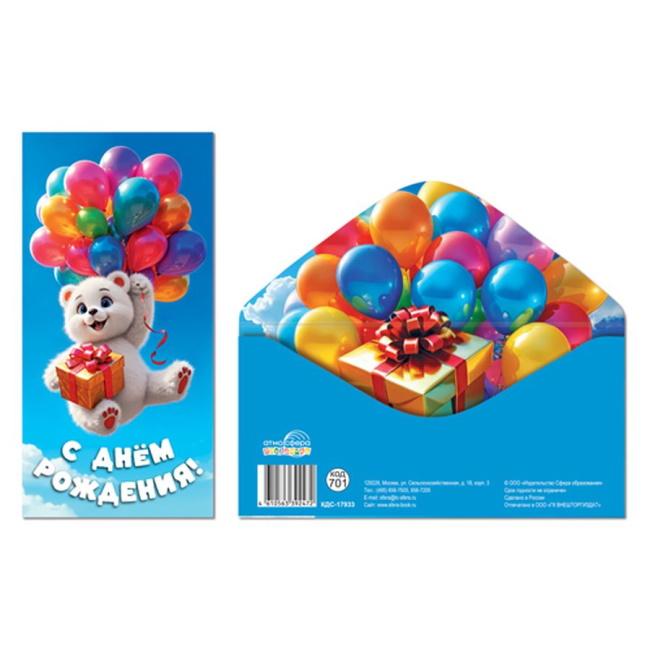 Конверт для денег детский шарики С Днем рождения! 1шт