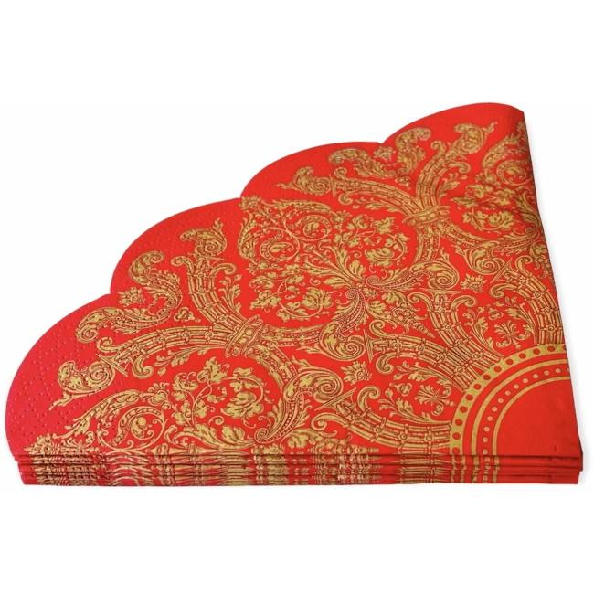 Салфетки 3-х слойные 32 Золотой орнамент на бордовом Art Bouquet Rondo 12шт