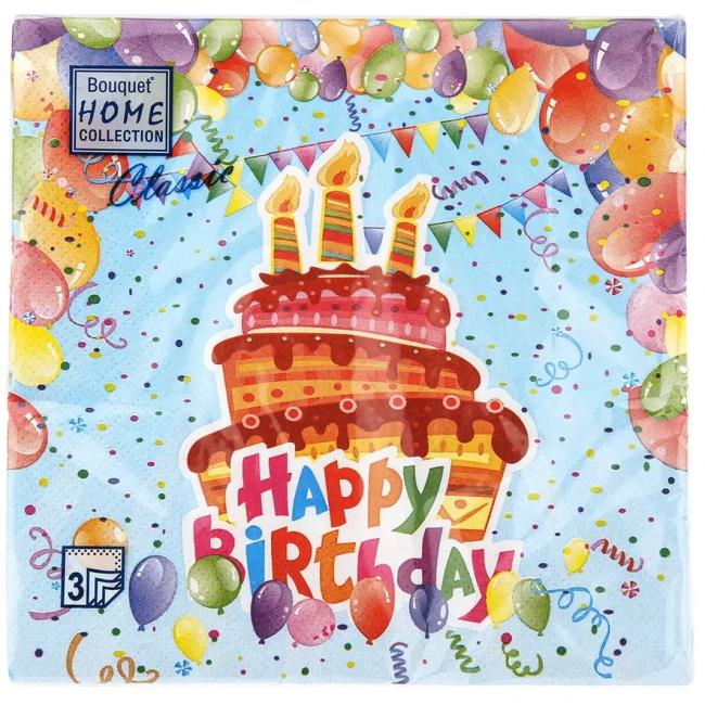 Салфетки 3-х слойные 33-33 С днем рождения Bouquet Home Collection Classic 20шт
