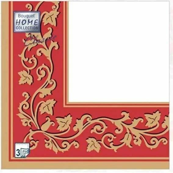 Салфетки 3-х слойные 33-33 Золотые узоры бордовый фон Bouquet 20шт