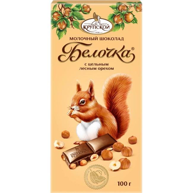 Шоколад экстра молочный Белочка с цельным фундуком КФ Крупской 100г