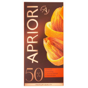 Шоколад темный 50% какао с апельсином и миндалем APRIORI 85г