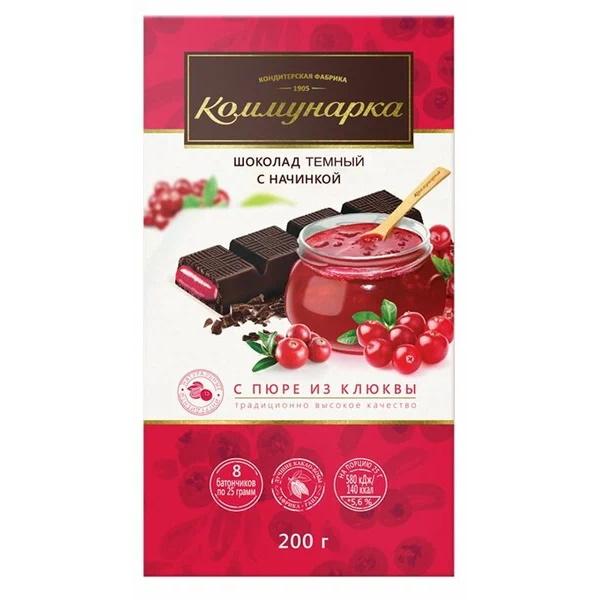 Шоколад темный с начинкой с пюре из клюквы Коммунарка 200г