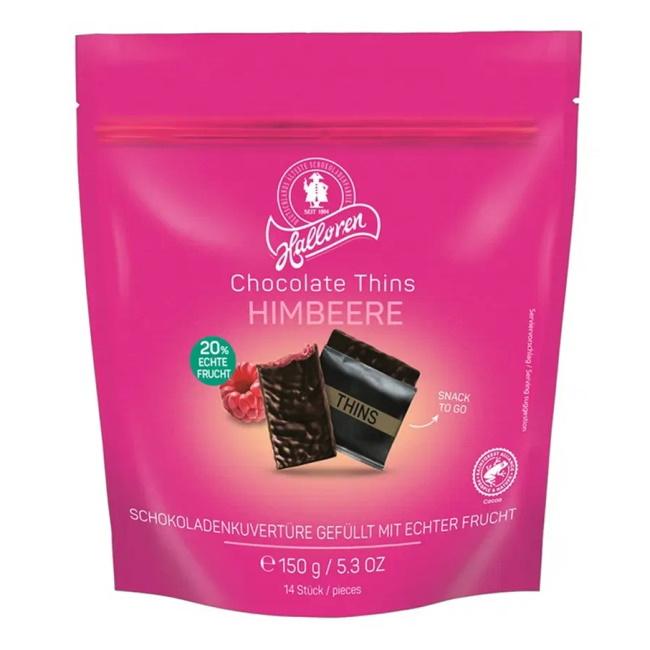 Шоколадные плитки с малиновой начинкой Chocolate Thins Halloren 150г