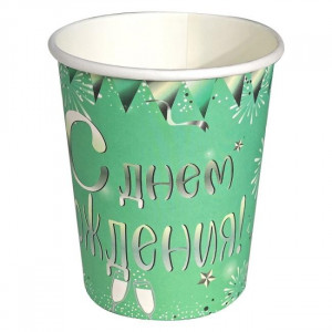 Стакан бум 250мл Яркий праздник бирюза 6шт