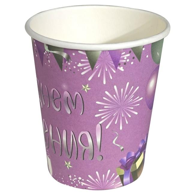 Стакан бум 250мл Яркий праздник лаванда 6шт