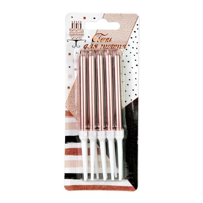 Свечи для торта с держателями 8см розовое золото 10шт