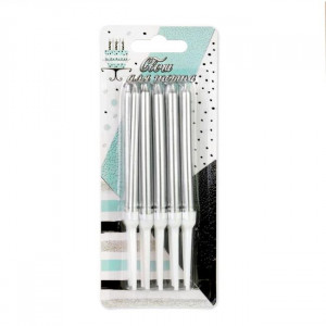 Свечи для торта с держателями 8см серебряные 10шт