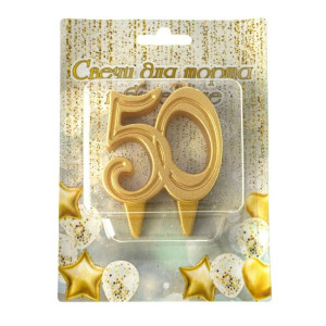 Свечи для торта с держателями 8см Юбилейные 50 золото 1шт