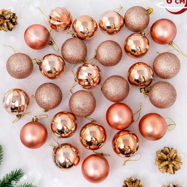 Украшение елочное подвесное Шар розовое золото 6см набор 27шт
