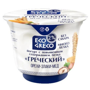 Йогурт Греческий Greco 2% с повышенным содержанием белка орех злаки мед Бабушкина крынка БЗМЖ 230г